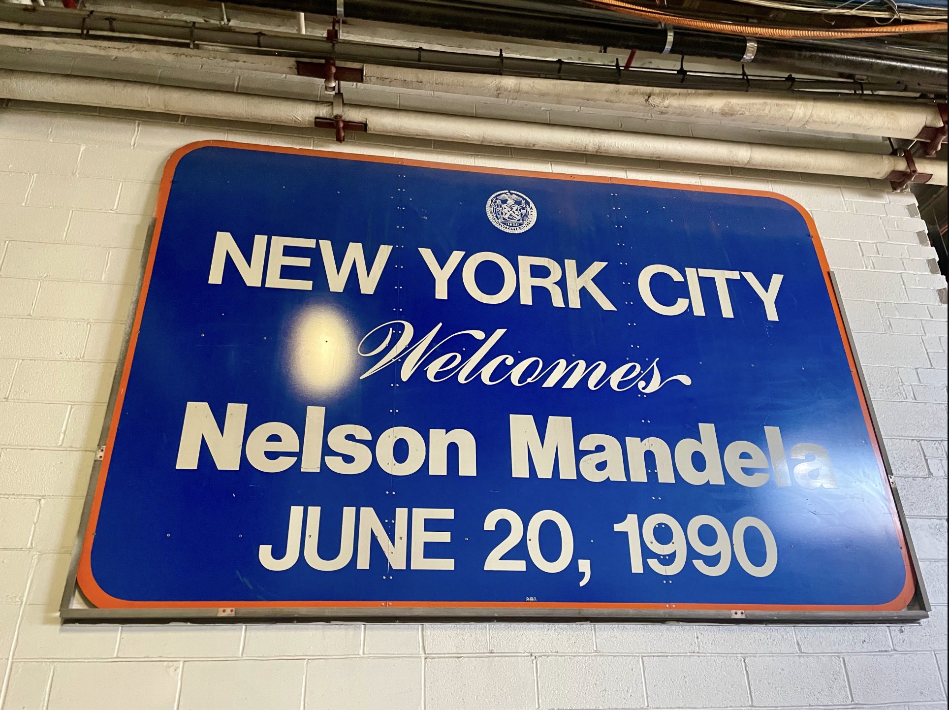 On the wall in the Maspeth DOT Terminal are signs from the past: New York Welcomes the Grammys!, New York Salutes the Troops of Desert Storm. And the final one before you turn the corner toward the screen-printing room: New York Welcomes Nelson Mandela. In 1990, the city’s first Black mayor, David Dinkins, celebrated Mandela with a ticker-tape parade after his release from prison. But some members of the Jewish community, upset by Mandela’s support for Palestine, threatened to protest, a fissure that would prove persistent. “Praising Mandela, Dinkins Threatens Fragile Coalition,” read the New York Times headline.