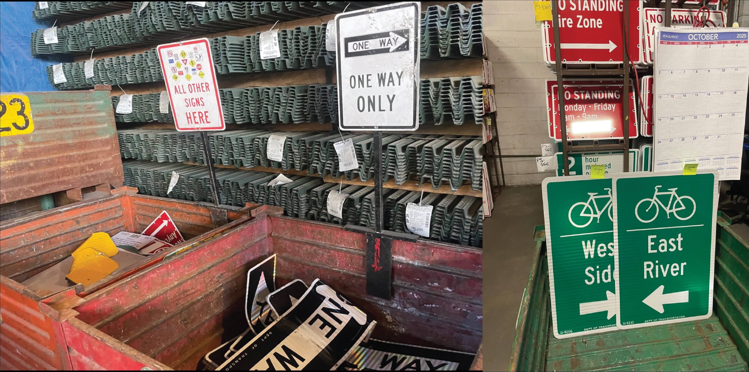 Two weeks before the general election, I was on an Open House New York tour of the DOT Sign Terminal in Maspeth, Queens. The facility, where 70,000 brand new NYC street signs start their life every year, is part of the city’s largely invisible urban infrastructure. Shapes are cut and punched from big aluminum sheets. The Loading Zone–type signs that create the city’s maze of parking rules are “powdered”—painted and cured to make the metal weather resistant and nonreflective.